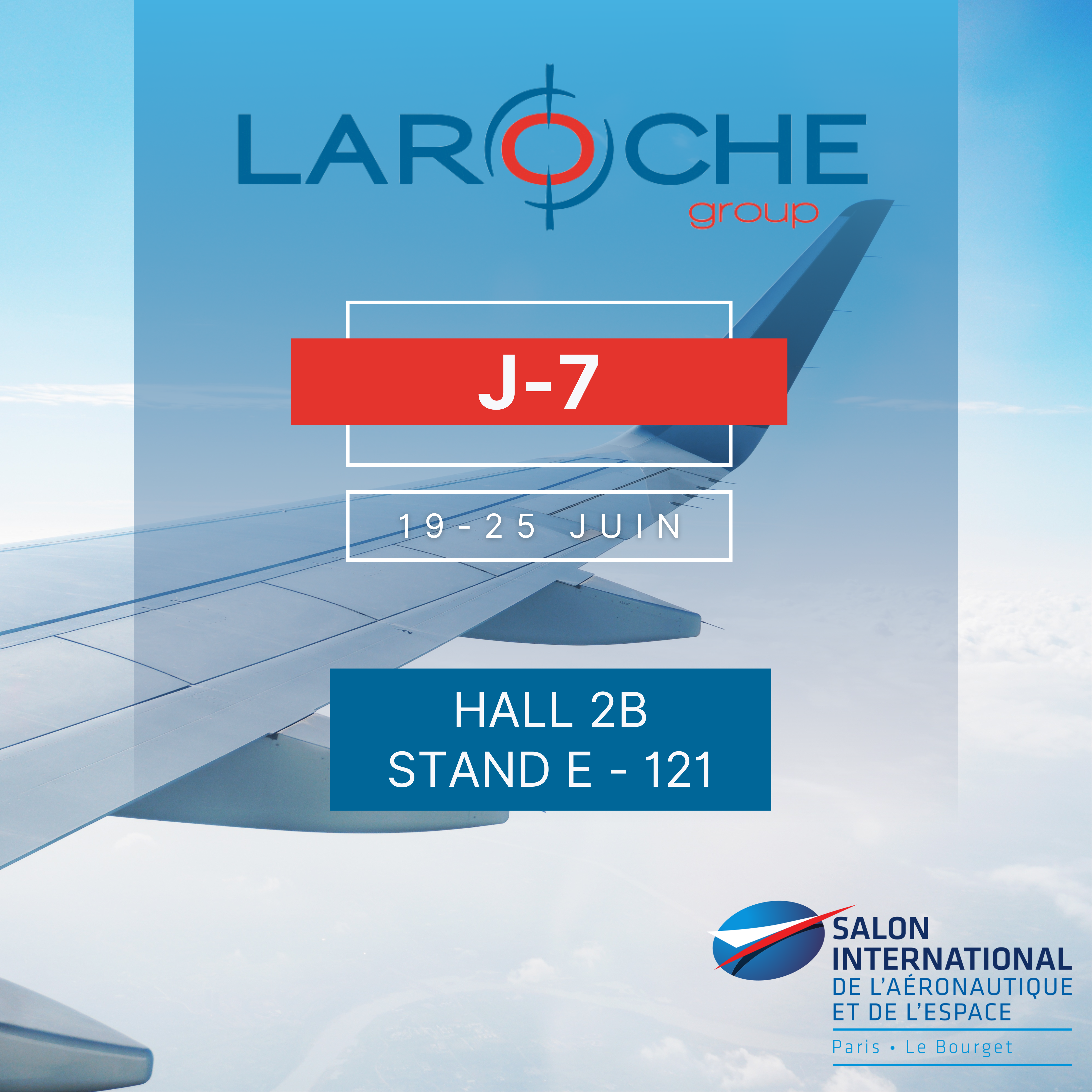 Salon du Bourget : J-7 ! Prêt pour l’embarquement ? ✈ Retrouvez les équipes LAROCHE Group dès le lundi 19 juin 2023 au Hall 2B, Stand E 121. Nous vous attendons avec impatience votre visite ! .